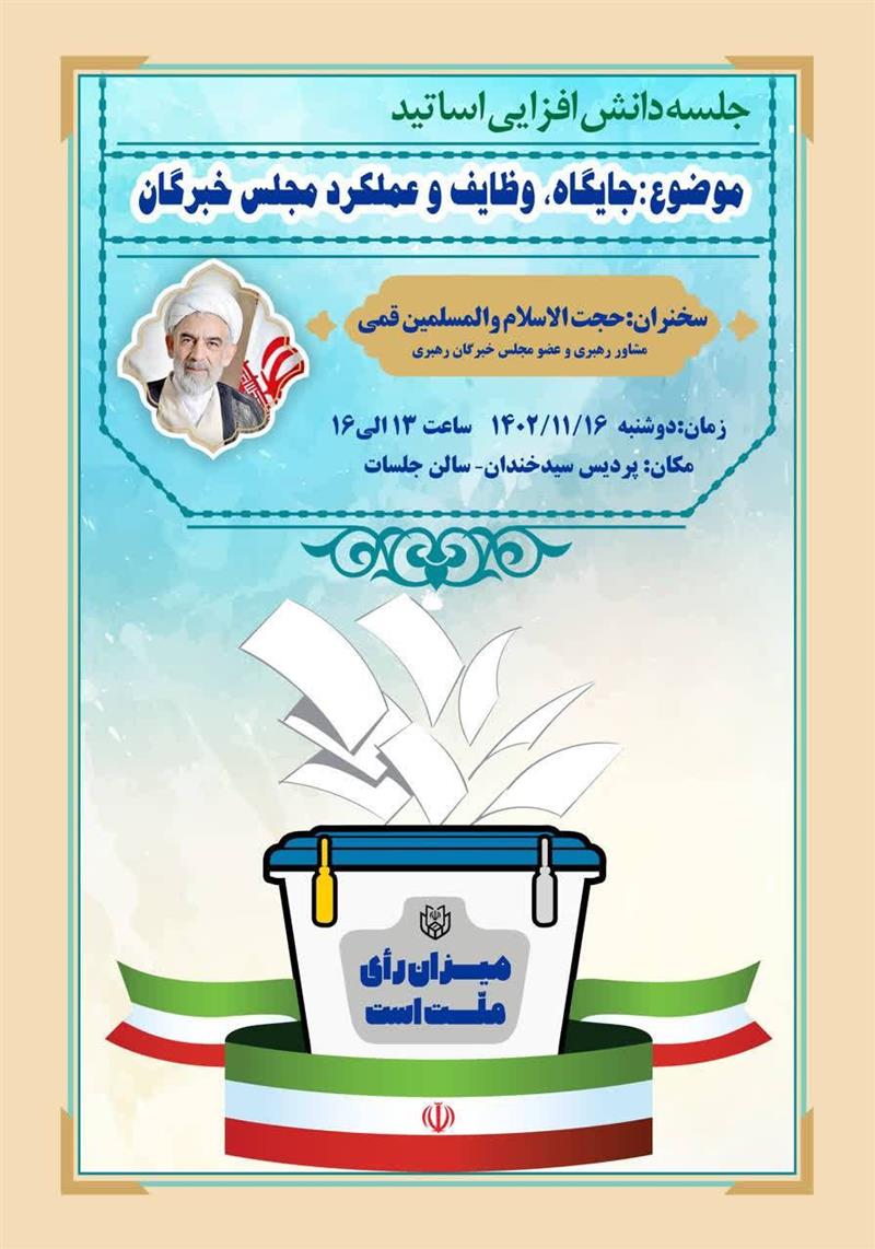 دانش افزایی اساتید با موضوع:جایگاه، وظایف و عملکرد مجلس خبرگان رهبری